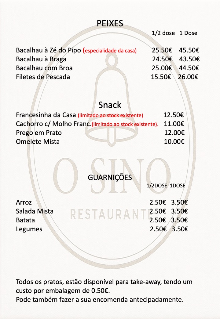 Consulte o nosso Menu para saber todos os pratos disponíveis.